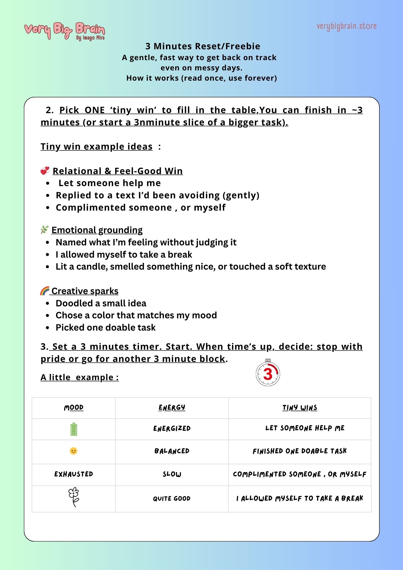 "I downloaded the 3 Minutes Reset out of curiosity… and now I use it every morning. It’s the first tool that doesn’t make me feel guilty when I’m slow or struggling to focus. I love checking off my tiny wins , it honestly shifts my whole mindset."